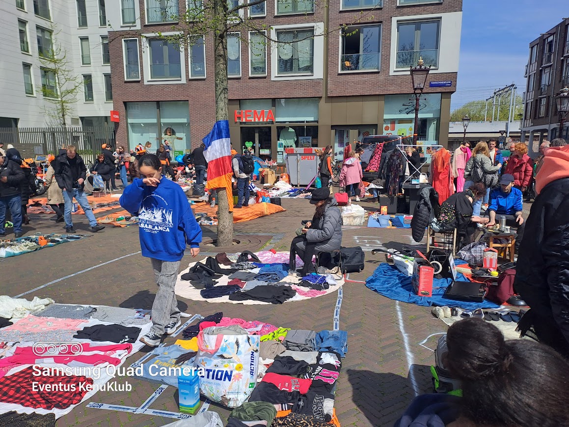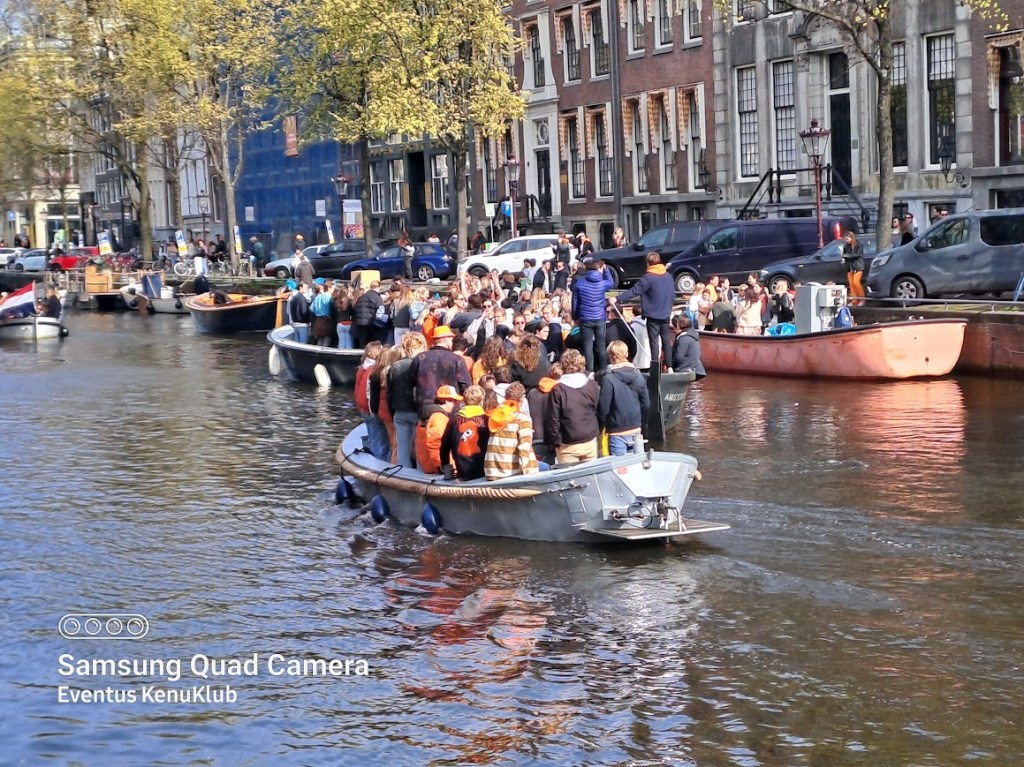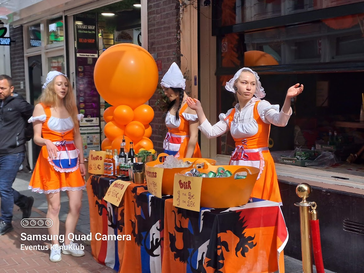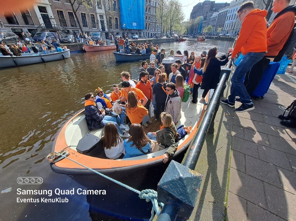 04.27-én kiköltözünk szállásunkról és Amszterdamba utazunk, ahol egyből belevetjük magunkat az ezen a napon tartott legnagyobb holland nemzeti ünnep, a Királynő Születésnapja – Koninginnedag – (2014-től a Király Napja: Koningsdag) narancssárga forgatagába, bolhapiacozunk, elvegyülünk a a mindenféle zenére mindenféle formában bulizós tömegben. A hangulat egészen elképesztő, a csatornák tele vannak bárkákon táncoló fiatalokkal, a házak előtt családi bolhapiacok, mindenki vidám, laza – szabadság van.