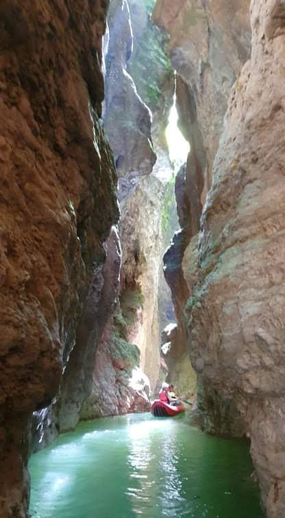 Vízre szállás után egy egészen másfajta vízen találjuk magunkat. Széles, gyors folyású, monumentális sziklafalak között hömpölygő türkiz színű nagyfolyón. Ide hat személyes rafting hajókat viszünk, melyben az óvatosabbak is biztonságosan leereszkedhetnek, mert a táv második felében van néhány viccesebb rész.