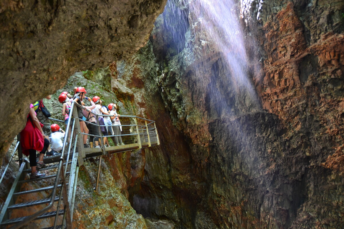 Innen indulunk gyalogosan egyenesen be a hegybe. Kiépített vasalt utakon, hidakon, lépcsőkön a hegy belsejében, mégis ég és föld között, túrázunk, grandiózus látvány felülről gyönyörködni a sziklákban, a lezúdulo vízesésekben. Az út kb. 1.5 óra, alattunk a mélységben rohan a víz.